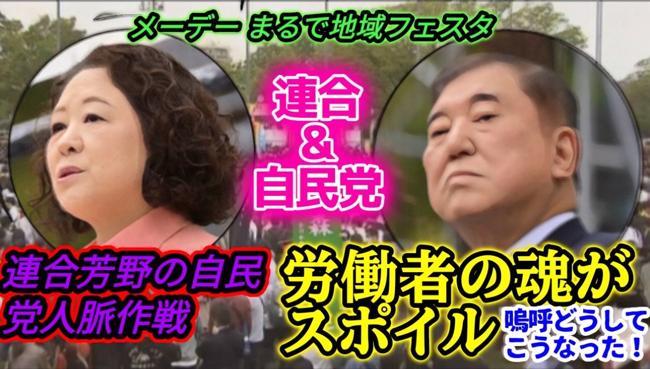 〈連合東京メーデー4月26日開催 5月1日は代々木で労働組合が集会〉かつて野党と共に歩んだ連合は、いま自民党の票田へと変貌しつつある。その象徴が、2025年4月26日に代々木公園で行われた「第96回メーデー中央大会」だ。約29,000人が集まったが、かつての熱気は見る影もない。今年の連合メーデーのテーマは「中小企業も賃上げ拡大」。芳野友子会長(60)は「これからも一緒に頑張ろう」と訴えた。石破茂首相(68)も登場し、「賃上げは成長戦略の中心だ」と強調した。しかしその光景は、労働者のためというより、自民党と連合の蜜月をアピールする場に見えた。〈労働運動の「パワー不足」とメーデーのお祭り化〉1960~70年代は労働者主体となり、パワーが炸裂していた。連合のメーデーと言えば数十万人が集まって「賃上げ!反戦!政権交代!」と、火花を散らす闘争の場であった。しかし現在では3万人と規模縮小、家族連れやNGOブース、被災地支援コーナーなどと、まるで地域フェスタ状態。労働者の組織率は17%まで落ち、非正規雇用が4割近くに膨らんで、団結力はガタガタ。個人主義とリスク回避の意識も高まって、労働者が「ストライキ!」と拳を振り上げるより、静かに転職サイトを眺めている方が現実味がある今日このごろ。連合は「働くことを軸とする安心社会」などというスローガンを掲げているが、労働者は闘争心を削がされ、お祭りムードで誤魔化されてきた。〈日本のメーデーの起源と目的は?〉日本でメーデーが始まったのは1920年5月2日、東京・上野公園での第1回開催に遡る。労働者の権利向上、労働条件改善、8時間労働制の確立などを求める集会としてスタート。元々は1886年のアメリカ・シカゴでの労働運動(ヘイマーケット事件)に由来し、労働者の団結と権利主張の場として世界的に広がった。歴史的背景を鑑みると、戦前は労働運動が活発だったが、第二次世界大戦中は政府により開催が禁止されていた。戦後、労働組合の活動再開とともに再び開催され、労働基本権の確立や民主主義の発展、平和の希求に貢献。〈1989年以降から労働組合は分裂〉開催形態は、かつては5月1日に全国統一のメーデーが開催されていたが、1989年以降、労働組合の組織再編や対立により、連合、全労連、全労協などによる分裂開催が常態化。連合は主に民間企業を中心に、ゴールデンウィークの影響を考慮して2001年以降4月の最終土曜日や昭和の日に開催日を変更している。〈連合(日本労働組合総連合会)、700万人の組合員を抱える日本最大の労働団体である〉かつては立憲民主党や国民民主党の“ドッグトレーナー”のように、野党をガッチリ支えていた。2009年の民主党政権交代も、連合の吠え声が大きかったから実現したようなものだ。なのに今は自民党の膝の上。一体どのような状況のかわりようだろうか?〈野党が弱体化して連合が愛想を尽かした〉連合は元々、野党の「政権交代マシン」の役目。しかし、民主党政権が3年で終焉、立憲民主党と国民民主党に分裂したあたりから、野党はまるで制御不能に陥った。2023年のNHK政治マガジンでも、「連合は野党の分裂で影響力ダウン、だから自民党に目を向けている」というような話が出た。 立憲民主党は共産党と絡んだり、国民民主党は自民に秋波を送ったりで、連合は「野党に賭けていても賃上げも何も進まない」とブチ切れたというのが理由だ。実際、2019年にはついに立憲民主党も国民民主党も来賓ゼロ。 野党が勝手に自爆し、連合は「もう自民党と直で話した方が早い」ということにシフトした。〈芳野会長の、自民党「連合取り込み作戦」がエグい!統一教会の人脈を活かしたか〉自民党も連合をただの労働団体とは見ていない。組合員700万人は、選挙の票田としても大きいし、労働者の声は社会的影響力がある。岸田政権は特に狡猾で、連合を野党から引き剥がして分断する戦略を推進。2023年には連合出身者を政府ポストにねじ込み、8年ぶりに「政労使会議」を復活させ、連合に「我々と組めば賃上げも進む!」と猛アピール。2024年、2025年と、岸田文雄元首相(67)や石破首相がメーデーに顔を出して「物価超えの賃上げを約束」も、連合の票をガッチリ掴むためのパフォーマンスにすぎない。自民党の運動方針にも「連合との政策懇談を強化する」と謳い、2023年には統一教会と噂のあった萩生田光一氏(61)や、小渕優子氏(51)と政策トーク。これはもう完全に連合を自民党のサテライトにしようという魂胆が見え見えである。〈芳野友子の「現実路線」が自民党と急接近〉連合の芳野会長は2021年に初の女性会長に就任した。2023年に自民党大会に招待された時は、さすがに野党支援の立場を考えて断ったが、岸田元首相と何度も会談したり、2025年には自民党大会で「選択的夫婦別姓を今すぐやるように!」と演説をぶちかましたことも。芳野会長は「労働者の賃上げやジェンダーフリーを実現するには、与党と話すのが一番の近道」と割り切っている。2023年の政策懇談
