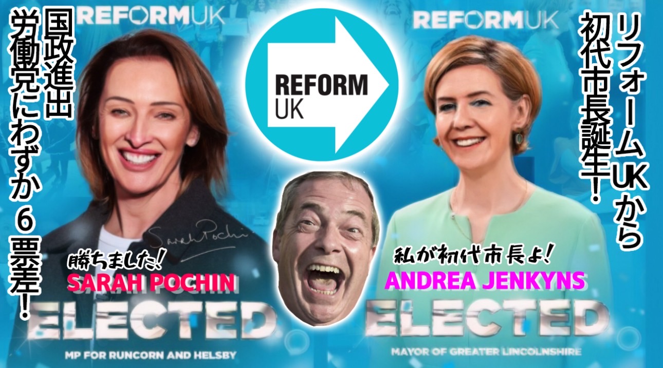 サラ・ポーチン(Sarah Pochin)氏(56)は、ランコーンおよびヘルスビー(Runcorn and Helsby)の英国議会選挙区における下院補欠選挙(2025年5月1日実施)でわずか6票差で当選した。ポーチン氏は12,645票を獲得し、得票率38.72%を占めた。労働党候補のカレン・ショア(Karen shore)氏は12,639票(38.70%)を獲得しその差6票。保守党候補のショーン・ホールストン(Sean Houlston)氏は2,341票(7.17%)を獲得した。ドラマティックな展開となった一夜、結果は僅差だったため再集計が必要となり、結果発表は数時間遅れた。ポーチン氏はリフォームUKの候補として僅差で労働党候補を破り、同党の5人目の国会議員かつ初の女性国会議員となった。この選挙は、下院の元労働党議員マイク・エイムズベリー(Mike Amesbury)氏(55)が有権者への暴行による有罪判決後に辞任したことで実施された。ポーチン氏は、草の根運動と明確な政策ビジョンで支持を集め、特に地域経済の活性化、医療アクセスの改善、環境保護を訴えた。彼女のキャンペーンは、若者や地元住民の積極的な参加に支えられ、従来の政治に新たな風を吹き込んだ。「この勝利は、ランコーン&ヘルスビーの人々の声が届いた証です。一緒に、より公平で持続可能な未来を築いていきます」とポーチン氏は勝利宣言で語った。一方、労働党のショア氏は敗北を認めつつ、「地域のために戦い続ける」とコメント。 この結果は、改革派の勢いを示す象徴的な一歩であるとして、リフォームUKに人々が再び注目し始めた。ナイジェル・ファラージ党首(61)はランコーン&ヘルズビー選挙で改革UKが4票差で勝利!労働党は再集計を要求している。私たちは勝利を確信しています。とコメントした。〈グレーターリンコーンシャーの市長に選出したリフォームUK党員のアンドレア・ジェンキンス氏も当選が決まった〉アンドレア・ジェンキンス(Andrea jenkyns)氏(50)がリフォームUKの候補としてグレーターリンコーンシャーの初代市長に当選した。人口約100万人の地域を任される。リフォームUKは、これまでの中で最も重要なポストを獲得した。具体的には、ジェンキンス氏が104,133票(得票率42.0%)を獲得し、保守党候補のロブ・ウォルサム(Rob Waltham)氏の64,585票(得票率26.1%)を上回ったとされる。関連記事:英地方選、右派「リフォームUK」が躍進 補選も制すhttps://jp.reuters.com/world/europe/XEQJ7AS3EFOWNBUJKHGNQP6E7I-2025-05-02/英総選挙、反移民の右派「リフォームUK」が躍進 保守党支持者の票流れる https://www.nishinippon.co.jp/item/1231460/英地方選、右派「リフォームUK」が躍進 補選も制すhttps://www.newsweekjapan.jp/headlines/world/2025/05/549684.phpさくらフィナンシャルニュース公式サイトYoutube公式X公式note