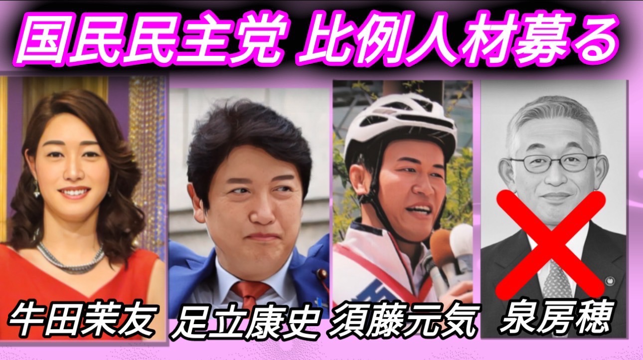 国民民主党/代表 玉木雄一郎(55)は、2025年夏の参院選に向け、比例代表候補として新たな人材を擁立する動きを加速させている。党は元衆院議員の足立康史氏(59)、元NHKアナウンサーの牛田茉友氏(39)、そして元参院議員で格闘家の須藤元気氏(47)会社員の奥村祥大氏(31)を候補として調整中だ。〈あの暴れん坊足立康史、擁立へ〉足立氏は維新の党や日本維新の会を経て、国民民主党に移籍した経歴を持つが、一部で物議を醸す発言が問題視され、擁立には慎重な声も上がっている。足立氏は、対立する政治家や政党に対し、政策論争を超えた辛辣な批判や個人攻撃とも取れる発言を繰り返してきた。たとえば、野党議員やメディアを「反日」などと表現し、議論の枠を超えた強い言葉遣いが批判を浴びた。Twitter(現・X)などで、感情的なコメントを頻発。2017年には、記者会見での発言や投稿が「不適切」とされ、日本維新の会から処分を受けたこともある。また、一部の政策、例えば憲法改正や安全保障関連法案を巡る発言で、強硬な姿勢が中道層や穏健派から反発を招いた。〈元アナウンサー牛田氏は4月14日に退職願〉牛田氏はNHK退職後、東京選挙区での出馬が決定しており、知名度を活かした票獲得が期待されている。牛田氏は元々政治の世界は考えていなかったと4月23日国会内の記者会見で述べ、直近で大きな仕事を抱えて、「迷っていては決断ができない」と政治家の道を選択した。〈須藤元気見損なったぞの声も大きい国民民主党入り〉一方、須藤氏は立憲民主党から初当選後、離党して無所属で活動していたが、反ワクチンなどの発言が賛否を呼んでいた。関連記事:須藤氏が国民民主党から比例出馬のニュースが流れると、残念だ、見損なったの声もS市長・泉房穂泉房穂氏“関係決裂”国民民主党対抗馬女性候補の会見発言にXで「御礼」 参院選兵庫選挙区国民・玉木氏「政策同意なら政権参加も」=夏の参院選後の対応巡り元NHKアナ牛田茉友氏「やりきれない思いがずっと」 参院選出馬決断のきっかけ実体験を明かす元NHKアナ牛田茉友氏「悩んだら、決断を選ぶ」須藤元気氏が参院選出馬か 国民民主党の候補者擁立報道が波紋国民、元格闘家の須藤元気氏擁立へ 医師の薬師寺道代氏も 参院比例さくらフィナンシャルニュース公式サイトYoutube公式X公式note