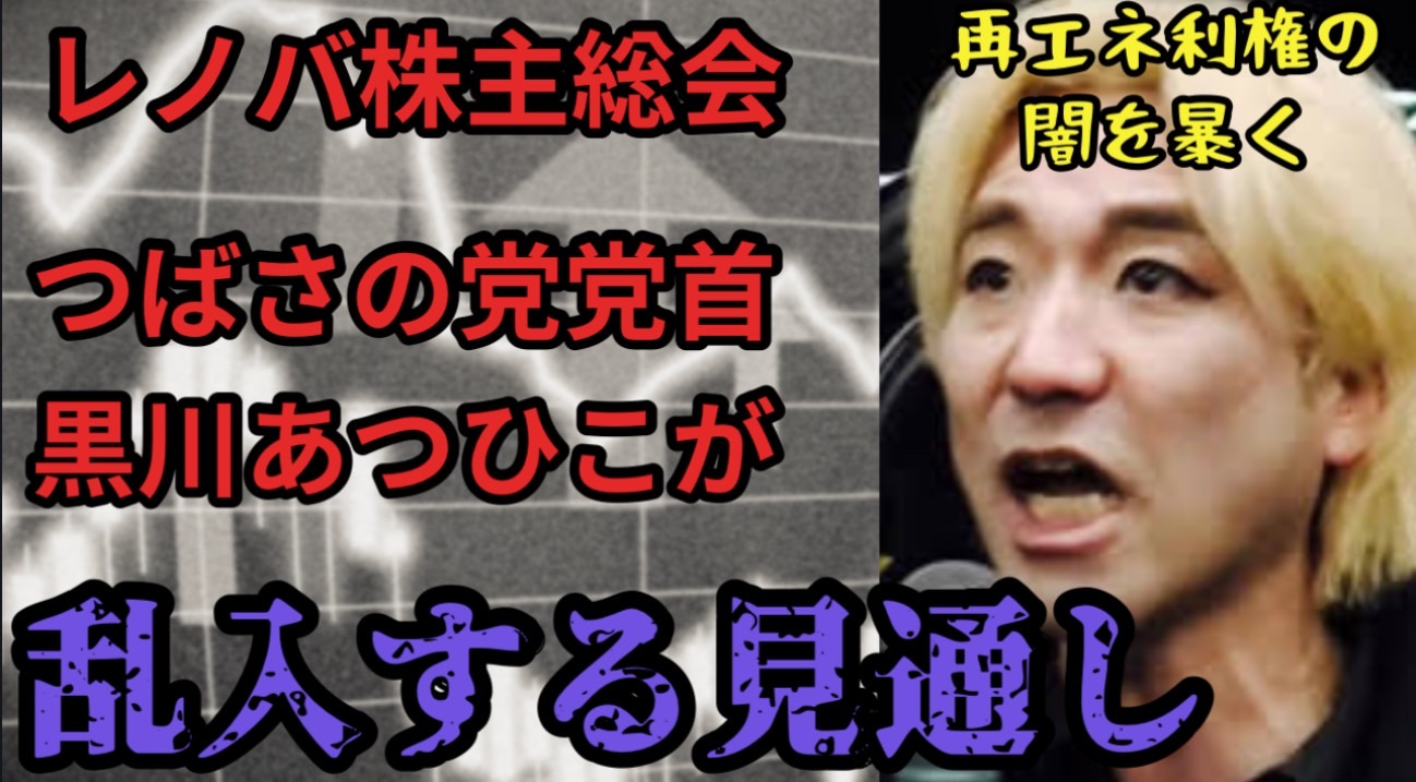 旧NKH党の幹事長を歴任し、つばさの党と政治団体Q代表を務める会社役員の黒川敦彦氏が、再生エネルギーなどを手がけるレノバ(東京都中央区、東証プライム、証券コード9519、木南陽介代表取締役)の株主総会(6月に開催)に出席し、同社のビジネスモデルの社会的妥当性や、秋本真利元衆議院議員との関係について、質問状を送付する見通しであることが、さくらフィナンシャルニュース編集部の取材でわかった。秋本真利元議員は、総裁選に出馬した河野太郎氏の側近と知られ、日本風力発電の前社長から7280万円の受託収賄罪により、2023年9月に東京地検特捜部に逮捕され、現在公判中であるが、同元議員をめぐっては、日本風力発電だけでなく、レノバ社との関係が深いとされ、実際に、国会で「レノバ関係者から献金など受けたことはありませんか」と問われ、「答えはノーでございます」と明確に否定する答弁を行ったものの、実際には、レノバ創業メンバーであり元取締役・特別顧問の本田大作氏が代表取締役を務める株式会社エストリオ(東京都港区、本田大作代表取締役)から、2018年から2020年にかけて計180万円の政治献金を受け取っていたことが明らかになっている。本田大作氏はレノバの創業メンバーであり、当時も同社の大株主・特別顧問であったため、秋本元議員の「レノバ関係者からの献金はない」という答弁は事実と異なり、虚偽答弁であったことは明白だ。実際、秋本元議員は、2017年時点でレノバ株を400株保有し、18年には2200株を買い増すなどしており、その間レノバ社の株価は、急騰し、21年9月17日には、5680円の株価を付けるなどしたが、現在は、600円を切り、株価も10分の1以下に下落している。表の政治献金でも、過去には、贈収賄の刑事事件に問われ、有罪になった国会議員の実例が存在するほか、現在、電力価格の高騰により、国民生活への負担が強まっているため、黒川氏の動向には、一定の注目と支持が得られるとみられる。すでに、千代田区長選での討論に端を発し、レノシーを運営するGA technologies(東証グロース、証券コード3491)の監査等委員取締役だった公認会計士の佐藤紗織里氏が、事実上の退任に追い込まれるなどしており、黒川氏の、株式市場での影響力は高まっていると言える。さくらフィナンシャルニュース公式サイトYoutube公式X公式note