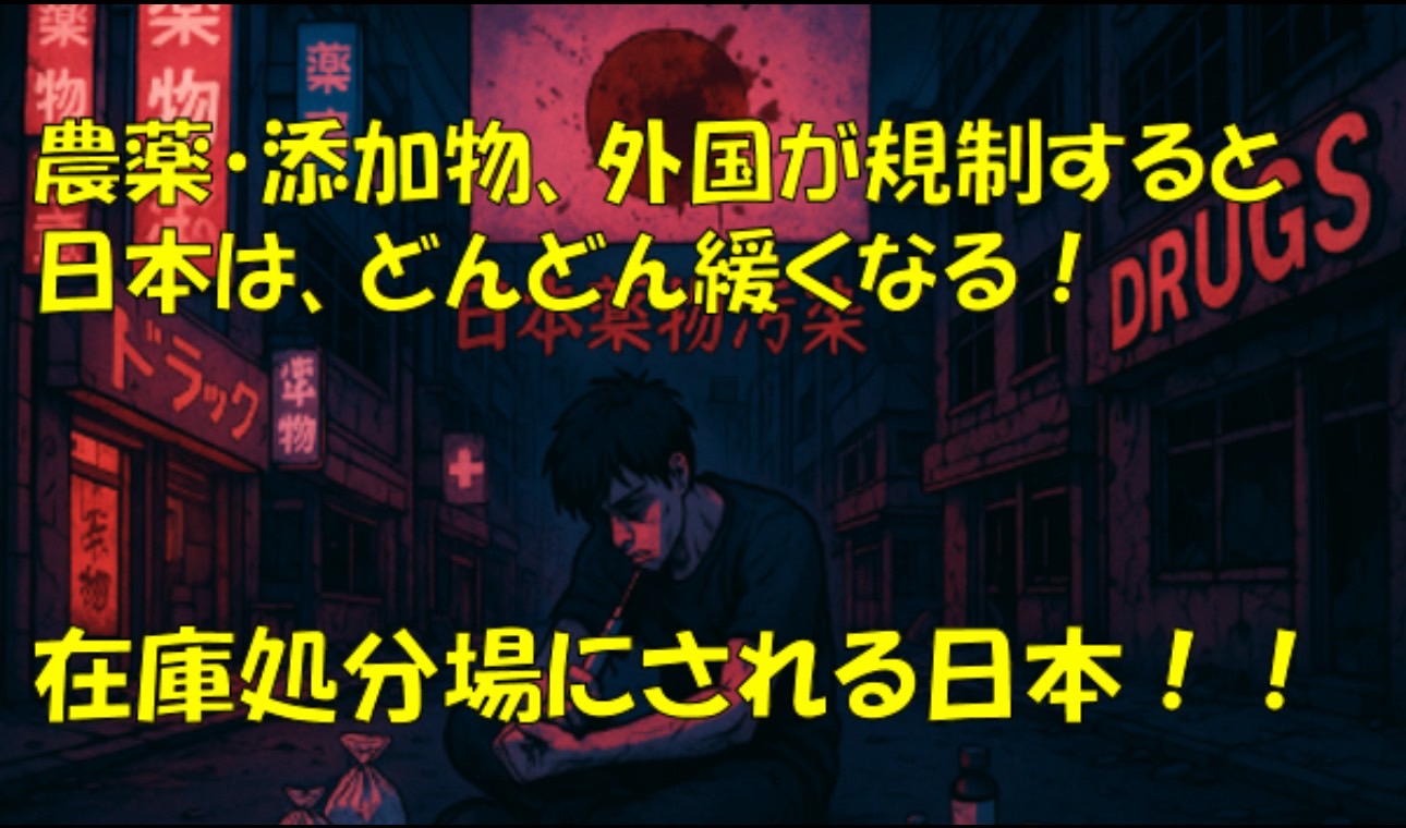 日本の基準はどんどん緩くなる。日本は、毒物の在庫処分場に。※ 時事通信記事参照米、合成着色料を段階廃止へ 健康増進、食品業界は痛手米食品医薬品局(FDA)と保健福祉省は4月22日、石油由来の合成着色料の利用を段階的に廃止する計画を発表。国民の健康増進が狙い。合成着色料の摂取は肥満や糖尿病などとの関連性が指摘されていることを踏まえた。合成着色料はキャンディーや飲料、シリアルなどに多く使われている。食品メーカーには痛手となり、経営戦略の見直しを迫られる可能性がある。~中略~ケネディ厚生長官は声明で「これらの有毒化合物は栄養面での利点は全くなく、子どもの健康や発育に対し、実際に測定可能な危険をもたらす」と述べ、取り組みの意義を強調した。~記事参照はここまで~<日本における合成着色料の使用状況とアメリカとの比較>日本の合成着色料の使用状況日本では、現在使用が認められている合成着色料は12種類。これには、食用赤色3号(エリスロシン)や食用赤色40号(アルラレッドAC)などが含まれている。特に、赤色3号はアメリカでの使用が禁止されることが決定されたが、日本では通常の使用による摂取では安全性に問題がないとされている。日本の消費者庁は、アメリカの決定を受けて、赤色3号の使用についての再評価を行う意向を示しているが、現時点では直ちに使用基準を改正する必要はないとの見解。アメリカにおける合成着色料の使用状況アメリカでは、合成着色料の使用に対する規制が強化されている。特に、FDA(アメリカ食品医薬品局)は、2027年までに赤色3号を含む8種類の石油由来の合成着色料の使用を段階的に禁止する計画を発表。これにより、食品業界は天然由来の着色料への切り替えを求められている。アメリカでは、合成着色料が子供の行動に与える影響についての研究が進められており、特にADHD(注意欠陥多動性障害)との関連が指摘されています。これに対し、FDAは合成着色料の使用を減少させることで、子供たちの健康を守ることを目指している。日本とアメリカの比較使用の許可状況: 日本では、合成着色料の使用が広く認められているのに対し、アメリカでは多くの合成着色料が禁止されつつある。安全性の評価: 日本の消費者庁は、赤色3号の使用については安全性に問題がないとしているが、アメリカでは健康への懸念から禁止が進められている。例えば「赤色2号」という着色料日本ではゼリーや清涼飲料水などに使用されている。アメリカやEU諸国では、発がん性やじんましんなどのリスクが高まるとされ使用禁止や使用が制限されている。合成着色料とADHDの関連性研究の背景:合成着色料がADHDに与える影響については、特に子供たちの行動に関する懸念が高まっている。カリフォルニア州の環境保護局(OEHHA)によると、一部の子供は合成着色料の影響を受けやすいとされている。科学的証拠:一部の研究では、合成着色料の摂取が子供の行動に悪影響を及ぼす可能性が示唆されている。特に、合成着色料がADHDの症状を悪化させることがあるとする報告も。2021年にカリフォルニア州で行われたレビューでは、赤色3号や赤色40号などの合成着色料が、子供の注意力や行動に影響を与える可能性があると結論づけられた。FDAの見解:アメリカ食品医薬品局(FDA)は、合成着色料がADHDの原因であるという証拠は不十分であるとしつつも、さらなる研究が必要であると認識している。FDAは、合成着色料の使用を段階的に禁止する計画を進めており、特に子供向けの食品における使用を問題視。※ プレジデントオンラインの記事によると学生への質問:Q 世界で一番危険な作物を作っているのは?A「アメリカ、中国」という回答Q 世界で一番安全な作物をつくっている国は?」A 9割近くの人が「日本」と回答ネットで検索可能な学生でさえも、国産神話が根強いFAO(国連食糧農業機関)の統計。農地1haあたり農薬使用量は中国は13kg日本も11.4kgアメリカ2.28kgフランス3.8kgインド 0.38kg ⇒日本の30分の1日本は世界の中でも農薬大国になっている。2015年5月19日 厚生労働省ネオニコチノイド系農薬の食品残留基準を緩和2017年12月厚労省が緩和したグリホサート残留基準値グリホサートとは、モンサント社が、ベトナム戦争の時に化学兵器の枯葉剤を製造に使った成分であり、現在ラウンドアップという商品名で除草剤として販売されている。日本では、ホームセンターで常時販売され、JAも推進しているが、世界では使用禁止や訴訟が数万件起こされ、モンサント反対デモも行われている。日本では、ほとんど報道されていない。モンサントジャパンと連携を取っているのが堀江貴文氏堀江モンサントと揶揄されている。グリホサートの残留基準値の緩和基準値の変更:上の図でも示した通り、日本では、2017年にグリホサートの残留基準値が大幅に緩和された。具体的には、小麦の基準値が5ppmから30ppmに引き上げられ、そばも0.2ppmから30ppmに緩和されました。これにより、輸入される農産物に対