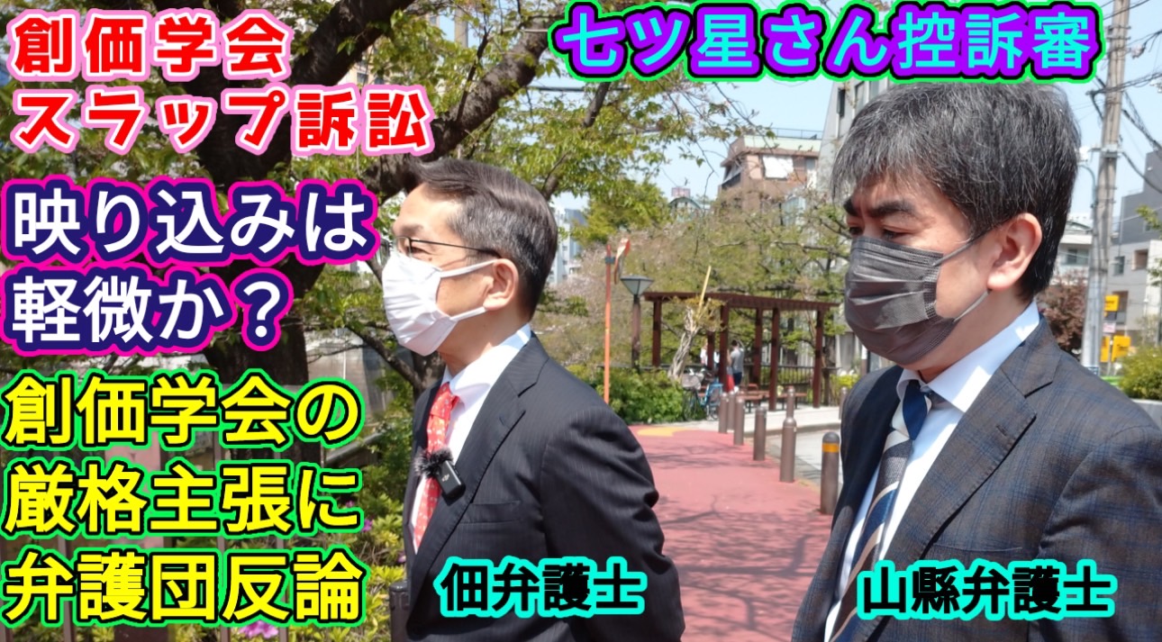 創価学会員でありながら、SNSを通じて、創価学会に対し苦言を内外に発信し続ける通称 七ツ星さん。2024年9月26日、聖教新聞をSNSにて無断使用することが著作権侵害だとして、創価学会が七ツ星さんを訴えて敗訴した。その後創価学会は期日前日の2024年10月15日に控訴。2025年1月28日、第1回口頭弁論。学会側はリモート参加。そして2025年4月17日、第2回口頭弁論が行われた(清水響裁判長)。今回創価学会側は、新たな中村秀一弁護士を交えて、西口伸良弁護士・堀田正明弁護士・長谷川伸城弁護士・甲斐伸明弁護士・大原良明弁護士と6名が揃い踏みした。〈引用記事の映り込みを巡る著作権法適用の争点 旧法か新法か、裁判所と創価学会側で意見対立〉開廷して一番、裁判官と創価学会側の中村弁護士とのやり取りがあった。引用記事の映り込みについての確認だという。例えば一つの記事を引用する場合、映り込みで別の記事が画像に映り込んでいる場合。この場合旧法が適応されるか 新法が適応するのかという議論が確認された。裁判所は新法が適応されるのではないかということを発言。原告の創価学会側は、旧法が適応するのではないかと反論した。〈新法(2018年・2020年改正後)映り込みが「軽微」かつ「付随的」であれば適法とされ、引用の範囲も柔軟に解釈される。〉例えば、街中で撮影した写真や動画に、偶然ポスターやアート作品が映り込んでしまったようなケースにおいて、それが「軽微」かつ「付随的」であれば著作権侵害には当たらないと明文化されたのだ。〈聖教新聞300件超引用の事例提示 七ツ星さん側、創価学会の訴訟姿勢に異議〉七ツ星さん側はまた、新たに創価学会側が見過ごしている、SNS上での聖教新聞引用ツイートを提出。特に2名のアカウントは聖教新聞の引用が300件超えており、これを見過ごして七ツ星さんを訴訟することは不公平なこととして、見過ごすわけにはいかない。七ツ星さんを弁護する佃克彦弁護士は、こんなに引用が見過ごされておきながら七ツ星さんの引用だけやり玉に上がっている事実を突きつけ、創価側の権利濫用を訴えた。〈写真とツイートの関連性が争点”と創価学会の厳格な主張に反論〉第2回口頭弁論後、七ツ星さんを弁護する山縣敦彦弁護士は次のように述べた。「創価学会側は、新聞に掲載されている一部の写真が著作権侵害されたと主張している。問題となるのは、その著作権侵害されたとされる写真と、七ツ星さんのツイートとの関連性があるかどうか、そこが審議のポイントだ。それなのにもかかわらず、『(創価学会の言い分が)写真だけではなく聖教新聞の記事全体を一体として見ているのが、おかしい』ということを言ってきているが、そんなことはない。そこまで厳格に、著作物と七ツ星さんの言論の間に、直接の関連性、それもすごく狭くて厳しい関連性を求めるっていうのは、おかしいんじゃないかってこちらは主張している。裁判例なんかも出して、きちんと反論している。また、旧法が適用されても七ツ星さんの引用は著作権侵害には当たらないとした上で、裁判所が適用する新法のほうが、引用される映り込みの範囲は拡大されていると付け加えた。〈七ツ星さんSNSでのコメント〉「私と創価学会との裁判結果が、都議選・参院選真っ只中の創価学会に、少しでも冷や水を浴びせる事になる事を望んで、僅かでも頑張るつもりでおります。」控訴審の進行に伴い、七ツ星さんの投稿が「引用」として保護されるか、学会側の著作権侵害主張が認められるかが焦点となる。判決は同年7月31日の予定。関連記事:【ライブ中継】創価学会が敗訴したスラップ訴訟 七ツ星さん第二回控訴審後の取材 佃弁護士による解説https://www.youtube.com/live/C75uxLQt2zU?si=nDyf3OANDJSuWrsU創価学会が完敗したスラップ訴訟に控訴!創価学会幹部の下半身醜聞を完全暴露!俗物中の俗物だらけの創価学会!創価学会スラップ訴訟に完勝した七ツ星さん 第一回控訴審後のインタビュー 2025/1/28https://youtu.be/YMR6Q09WQiY?si=2ZSrDX-zhLKLfkzo【『七ツ星』さん創価学会スラップ訴訟に全面勝訴 表現の自由守られる】https://www.sakurafinancialnews.com/%e3%80%90%e3%80%8e%e4%b8%83%e3%83%84%e6%98%9f%e3%80%8f%e3%81%95%e3%82%93%e5%89%b5%e4%be%a1%e5%ad%a6%e4%bc%9a%e3%82%b9%e3%83%a9%e3%83%83%e3%83%97%e8%a8%b4%e8%a8%9f%e3%81%ab%e5%85%a8%e9%9d%a2%e5%8b%9d/創価学会が著作権侵害訴訟で「惨敗」の衝撃、批判的な旧Twitter投稿者への“狙い撃ち”に東京地裁がNOhttps://diamond.jp/articles/-/351487創価学会が現役の創価学会員を訴えましたhttps://ameblo.jp/salsaiwabuchi/entry-12824473055.html さくらフィナンシャルニュース公式サイトYoutube公式X公式note