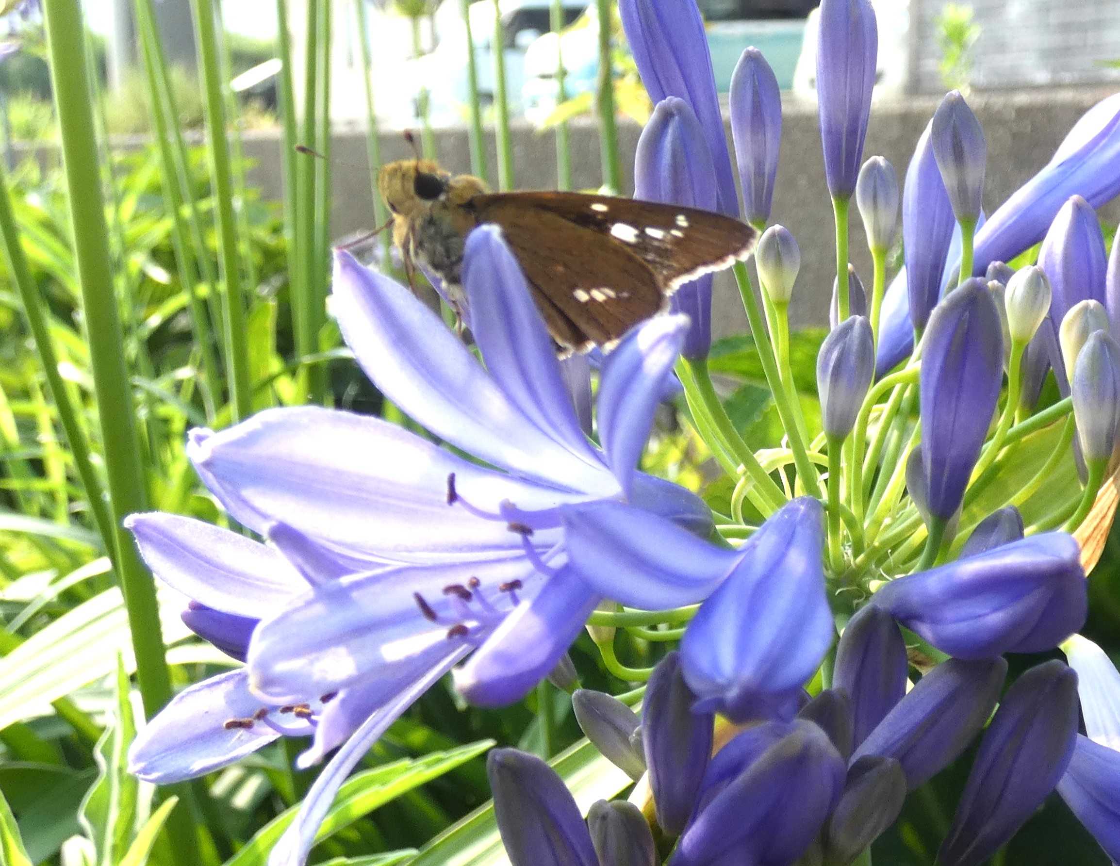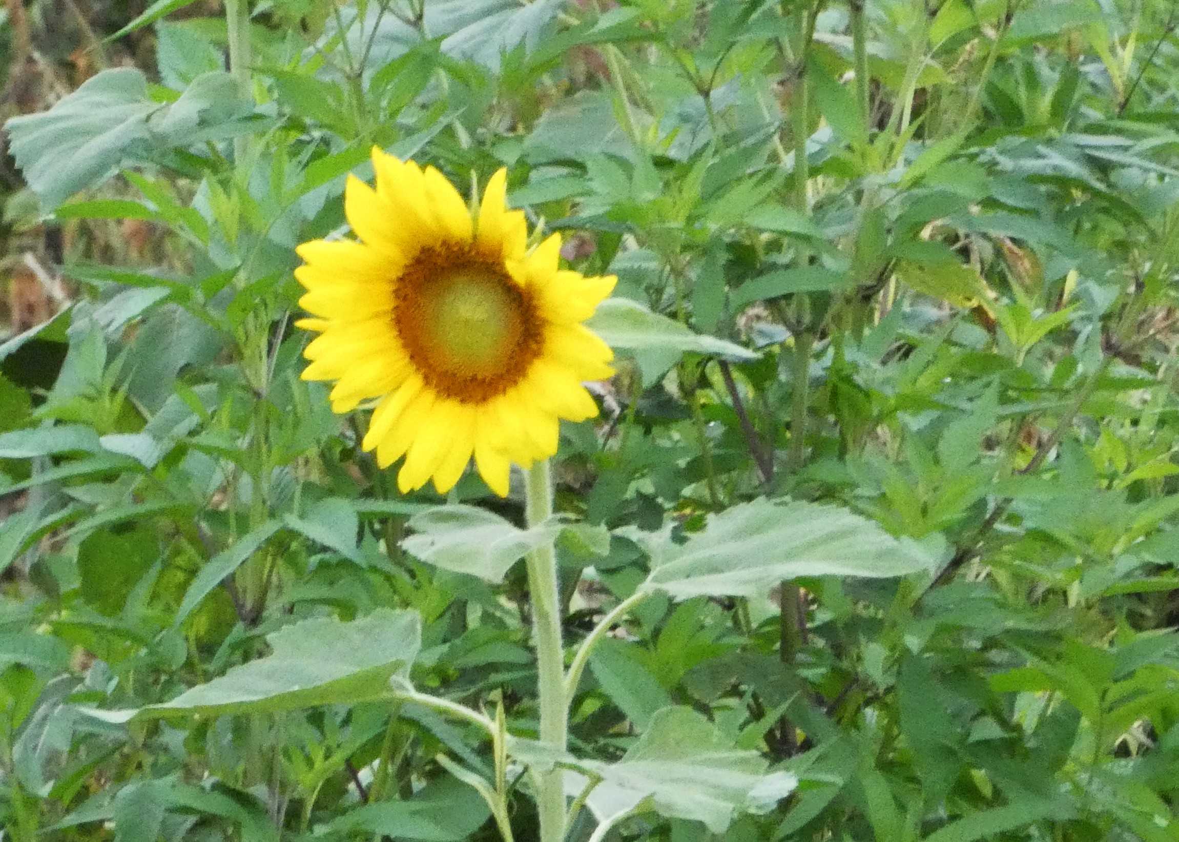 アバカンサスにセシリ蝶が来ました。綺麗な羽根のアゲハ蝶です。このアゲハは黄色です、何処から飛んで来たのか向日葵が堂々と咲いていました。