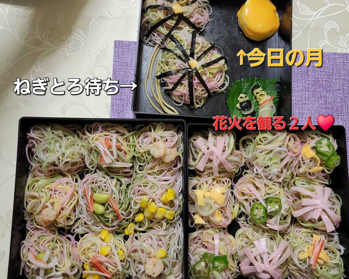 今日はご近所で花火大会が開催される予定です。毎年楽しみにしているのですが、午前中は雨と風が強くて中止かも?と昼食はソーメンを花火風にしました。亡母の浴衣の中で着る事がなかった浴衣を私なりの着方で半幅帯は縛らないカルタと文庫風の掛け合わせ。赤いヒールのサンダルか白いナスサンか悩みます。(^O^)あ★出かけないんだった~♪よざパパは本当に浴衣姿が良く似合います。そしてブログ上でママとなり、可愛がっていただいた時雨の月さんが作ってくれたピアス世界で1つしかない大切な作品です。(⌒‐⌒) メダカは夏休み中♪もし今晩の花火が撮影できたら投稿させていただきま~す♪