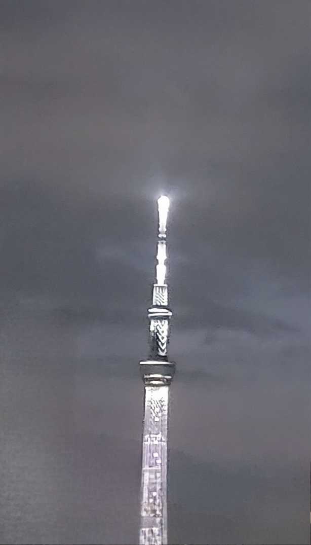 今日も東京スカイツリーは特別ライティングでした。今回は『金魚遊泳』の時間に合わせて撮影してみました。動画をお見せする事ができなくて残念です。スカイツリーを水槽に見立てて涼しげな青い水の中を楽しそうに金魚が泳ぎます本当は4匹いるらしいのですが、私の目と腕ではここまでです★(^o^)/~~よきお盆休みを~~~♪