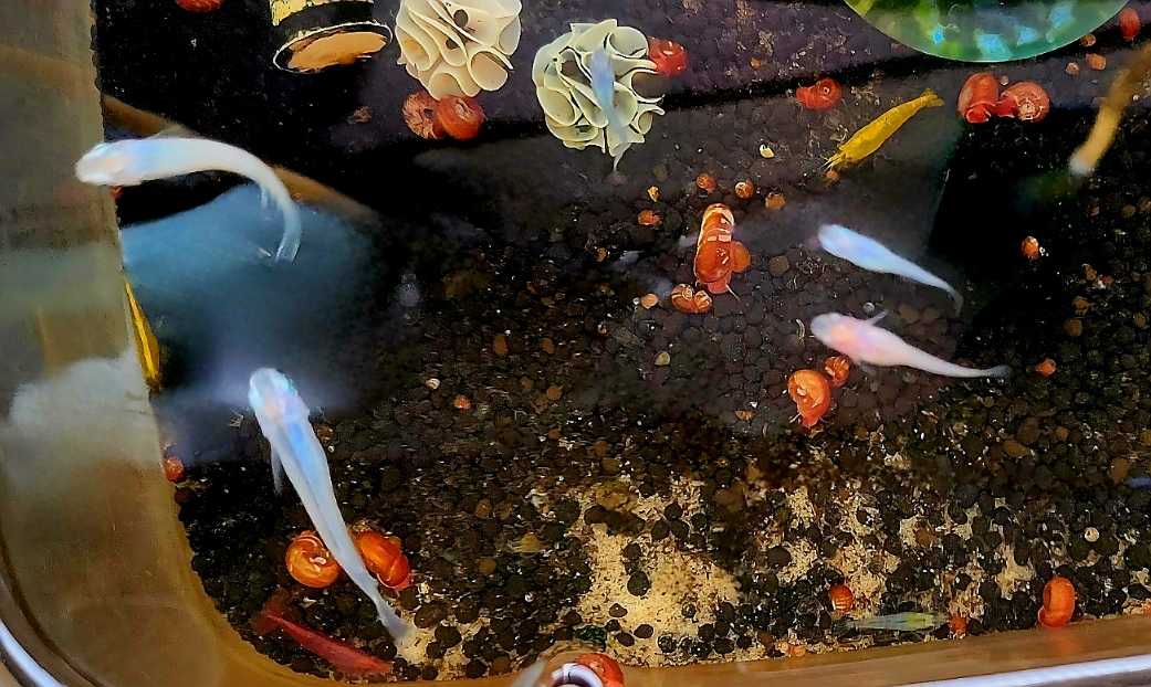 おはようございます。今日も暑くなりそうですね。我家は白い雪が沢山舞っております。めだかが居なくなった小雪小学校でしたが、スノーホワイトシュリンプ5名と白めだか6名をお迎えしました♪めだかのサイズからして小雪中学校ですね★白めだかは初めて飼育しますが、やっぱりみんな仲良しです。同じ方向に向かって泳ぎます。そして近くに集まります。(⌒‐⌒) ご入学おめでとうございます♪みんなで学生生活を心おきなく謳歌してくださいな♪