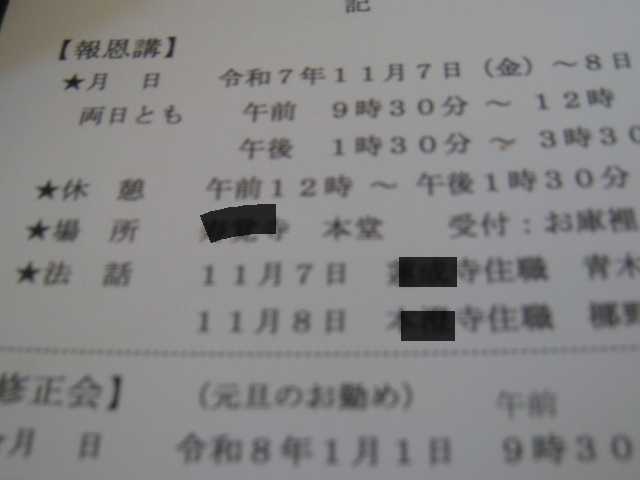 お寺さんのお名前など、隠してあるのは、個人情報に