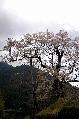 え~・・・今年は写真を撮りすぎまして UPが間に合わないので撮り貯めた桜を紹介。で本日はつるぎ町吉良地区(貞光町吉良)のエドヒガン桜をどうぞ撮影は4月6日。満開は8日と睨んだんだけど生憎7日は雨予報折角の花が散る前にと仕事前の早朝撮影を決行。つるぎ町に到着し、徳島最高峰剣山への道を脇に逸れてこんな道を上がるとありました。これが吉良のエドヒガン桜。(7分咲き)樹齢430年、樹高20mの桜は横にも大きくて崖から落ちそうになるほど後ろに反っても持ってるレンズには横位置で入らず・・・。この桜、つるぎ町のHPには女神が宿るとかなんとか・・・いつもより色濃い花が咲いてましたとこの見物客で賑わう女神様のすぐ近くで同じ時期に満開を迎える伴田の桜歩いて1分かからない場所なのに・・・。山肌から吉良地区を見下ろすように咲くこの桜はなんともいえない真っ白な花を咲かせます。↑上の白いのが伴田の桜。吉良地区へ来た時は、白とピンクをセットで見ましょう^^追伸、仕事前の早朝往復120kmは本業に支障をきたします。 注意しましょう