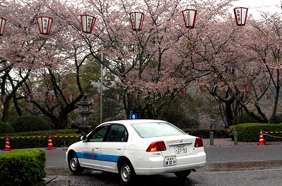 最近の自動車教習所は路上教習に花見も入っているのか?こんな山上の公園でありえないでしょ。教官の命令?