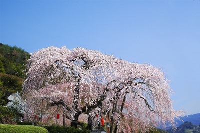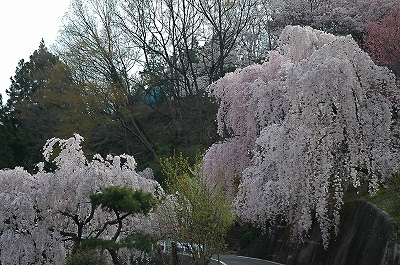 どんどん紹介しないと5月になっちゃいますよってことでもういっちょ昨日に続いて今日も木屋平村です。大北の桜を。毎年必ず会いに行く大北の枝垂桜。川井峠を下って民家に咲く見事な枝垂桜最近は有名になって対向できないような道に観光バスまで乗り付けるようになった。なんかもう遠い人(桜)になったような・・・。それでもこいつに会わないと春が来た気がしません。今年の大北枝垂桜は例年よりずっとずっと紅くて ここ数年では一番の色づきでした。大北一帯の民家の桜は皆いい色をしてました。それとこのお宅はどこまで桜を増やすのでしょう?もう櫻御殿また来年が楽しみです^^