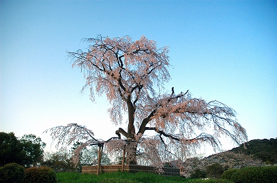 本日は カメラ同行せず。#56さんが横山大観の夜桜のコメントをしてくれてたのを思い出して京都の桜を・・・。横山大観が「夜桜」を描く時に影響を受けたといわれている富田溪仙の「祇園夜桜」。この「祇園夜桜」のモデルが京都円山公園の枝垂桜。モデルになったのは樹齢200年あまりの初代。現在は80年弱の2代目。2代目は初代の種から育てられた実の子。作品を見てから夜桜といえば円山公園の枝垂桜だろうと思っていた。以前に見たことはあるが夜桜は見たことがない。久しぶりに京都に行ける。 昼過ぎから急いで円山公園へ。え?・・・・・・何これ?あちこちの枝が切り落とされてあまりにも痛々しい。聞くとここ数年樹勢が弱く病気気味だそうで毎年手当に枝が切られているらしい。以前見た枝垂桜は幽玄そのもので見惚れたものそれが今は痛々しく可哀そうで、夕方になるとそれはもう「おばけの木」長年期待した夜桜がこれ一番良く見える場所を探して撮影。管理者の手厚い治療を受けている祇園枝垂桜。また元気な姿が見れるのを期待している。次の朝、時間もなく醍醐寺を少しうろついてまた徳島へ帰るのでした。