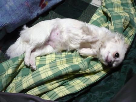 予定日を、少し遅れ獣医さんで、レントゲンを取ってもらい二頭で、逆さ子~心配でしたが、一頭目21日の朝5時40分に二頭目は、6時40分に~一人で産み安心 陣痛の一休み~男の子で~す僕も、男の子で~す可愛い~いちごも、もうすぐ~赤ちゃん大きなお腹~動きが 27日が、いちごの出産予定日 無事に、産んでネ