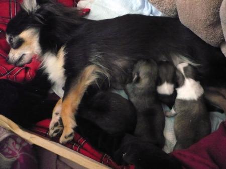 健太のお嫁さんモモちゃんです若いパパになりましたね~立っちが上手パパ似の男の子が2頭と女の子2頭、無事に産まれました動画も撮ったので見て下さい初乳モモちゃん、ご苦労さまこれからが大変だけど、がんばってね新米健太パパも子育て手伝うんだぞっ
