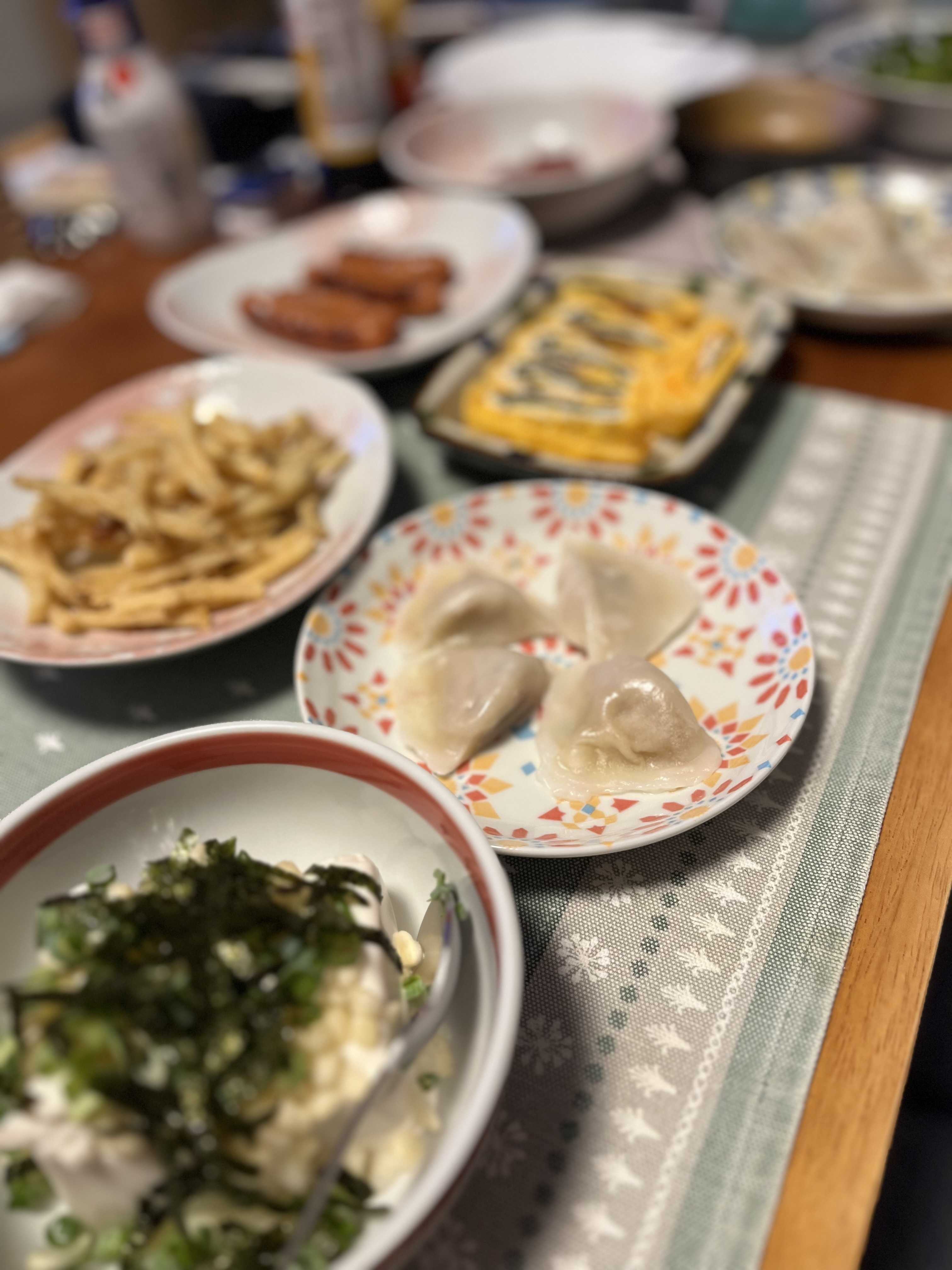 ②冷凍水餃子→4個をポン酢で、4個を市販の餃子のタレで食べました。