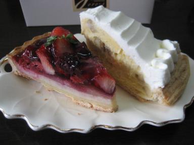 もうね胃袋が おかしくなってしまったかもぉ~(∥ ̄■ ̄∥) バナナパイが 食べたくて思い出したんですすぐそばの ケーキやさんにも あったあった~バナナクリームパイ しかも 1個にしておけばいいのに つい・・・(-_-)欲張りなもので・・・もうね、 満足ぅそれから ベリータルト美味しいけど 普通に苺だけが いいかなぁ・・・ とまぁ。。。最近 甘いものばかり 食べているけど 体重は・・・ いかほどぉ~?(どんだけぇ~のリズムでお願いします^^) アハハハハハハッ、 は( ̄  ̄)......... そうだった来週は 健康診断が予定されてるんだった ( ̄▼ ̄|||)