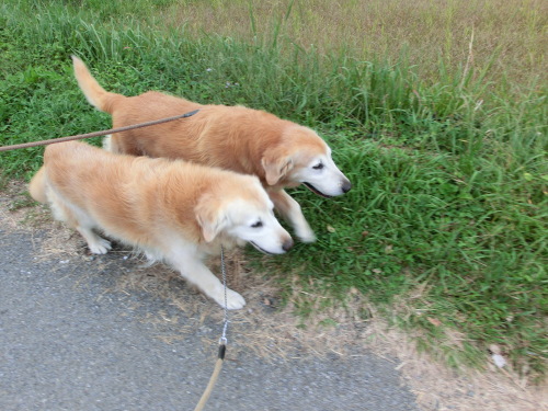 実家で 飼っていたゴールデンレトリバーの 闘病記録です。スズは 前庭疾患と思われる症状で 2回目の起立不全でしたが私たちの為に 元気を取り戻し 一生懸命頑張ってくれました。 今回 スズが早い回復を見せたのは ラブのおかげです。ラブは姉の家にいる スズの母犬。 父犬のベルがいなくなって寂しすぎた結果が 前庭疾患を起こしたのならと思いラブに来てもらうと どこか遠くを見てるようなスズの目が犬らしさを取り戻すような 目つきになるんです。そして ステロイド剤を減らしながら7月14日 両親が留守の為 スズは母犬ラブのいる姉の家にお泊り。ところが スズの鼻から 黄っ鼻が出てることに気が付く。膿のような臭がありました。食欲や元気は回復していたけど 首の傾きと 頭の揺れがひどく歩行は胴輪でサポートし 私たちに寄りかかったり 倒れたりしながらの状態。前庭疾患で見られる眼振や嘔吐、旋回歩行はなし。 顔面麻痺のせいか 水を飲まなくて困っていたのですが姉の家で 母犬ラブに刺激されたのか 水を飲むようになりラブと遊んだり テレビに興味を示したり姉の4人家族に可愛がってもらって 楽しい お泊りをしたのでした。 その後 歩行はふらふら状態だったので スズ一人で庭に出ることは出来ません。だから 排尿と排便には ものすごく気を使いましたがスズが 自分の部屋を汚さないように頑張っているので私たちも 仕事前と 昼休み 仕事が終われば スズの所に行き出来るだけ スズに負担のないように心がけました。 スズの お散歩コースは 初めは 家の庭を一周からでしたが少しずつ田んぼ道に行くなど 距離を伸ばして リハビリ。ただ 散歩に行こうと言っても 反応が鈍い時がありスズが立ち上がろうとするまで待ちます。行きたくないときは 立ち上がっても すぐに伏せをします。今考えると 食欲はあっても 体はきついよと言っていたのかもしれません。そして 散歩に出ても 時々 立ち止まり ぼーっと考えるスズ。もしかして痴呆?とも 思いましたが 本当のところはわかりません。 涼しくなったら ゆっくり時間をかけて 一周しようねって絶対 回復すると思ってました。
