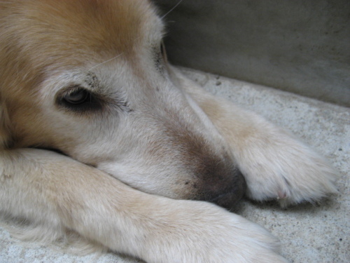 続けて実家で飼っていた ゴールデンレトリバーの 闘病記録になります。 6月11日 ベルベルが 呼吸困難を起こし 入院3日目。 朝 病院に連絡を入れるとまた 今は落ち着いてるという 嬉しい知らせ。9時ぐらいに 仕事を抜け 母と姉と3人で 病院に行く。 私たちは ベルを興奮させてはいけないと思いベルのいる 小屋の小窓から そっと様子を見た。きょとんとしている。 見つかってしまった!! ベルは 小屋から出てきて 先生が急いで 点滴を抱えて 外に出た。もったりとした足取りで 排尿。周りの空気の匂いを嗅いでいる。そして 排便。 やっぱり ベルは元気になる!!と思ったのにその後 すぐに呼吸が荒くなってきて私たちも ベルを興奮させてはいけないと思い 病院を退去。そして 私は仕事に戻ったんですがその後 また発作が起きたようで お昼に病院から連絡があった時はもうダメかもしれないとのこと。すぐに病院に行き 苦しそうなベルを見ることしか出来ない。 ゼーゼーと 必死に呼吸しているだけという感じだった。 この時はまだ 呼びかけに首を 上げようとしたり 意識はあった。 私は 午後から休暇を取ることにして 着替えて急いで病院に戻りましたが14時ぐらいに 戻った時には 意識がもうろうとしている感じ舌の色も グレーを通り越し 赤黒く伸びきっていました。だんだんと 呼びかけに 目の動きもなくなり今度という今度は 夜まではもたないでしょうとのこと。 そして 先生から提案されていたこともあり母と姉と 話し合った結果15時頃 安楽死という方法を選びました。 苦渋の決断。 呼吸が 静かになり スースーと寝ているように息を初めもっと早く楽にしてあげれば良かったと思いました。そして 安らかに。。ベル いっぱい苦しかったね、ごめんね。 安楽死。。今でも この選択は 誤っていたのかと後悔が残っています。 やっぱり 前の日に 無理にでも自宅に連れて帰りベルが苦しそうでも 息をしている限り 見届けてあげるべきでした。 そして スズは理解していないようでしたが 火葬する前に ベルとお別れをさせました。もしかしたら この時 スズはもうすぐ僕も お父さんの所に 行くからねって言ってたのかもしれません。 ベルは うちに来た時から とってもわがままな わんこ。部屋のガラスを割ったり 庭に穴をいっぱい掘って 悪いことをいっぱいしました。でも とても利口で 面倒見が良くて とても優しいベル。ベルと出会えたことに 感謝しています。ベル 楽しい時間を ありがとう