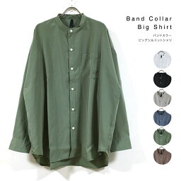ポリエステル バンドカラー ビッグシルエット シャツ 長袖 無地 314026 メンズ 【 送料無料 】 ノーカラー ロング ワイド ドロップショルダー オーバーシャツ モード ストリート系 オーバーサイズ 白 黒 グレージュ サックス グリーン モカ M L XL