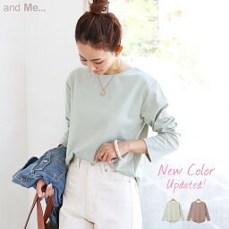 【X-2】【メール便対応B】【送料無料】Tシャツ カットソー 長袖 トップス 春 秋 カジュアル 無地 レディース ベーシック スリット ラウンドネック ポンチ ラウンドヘム オフィス オケージョン きれいめ