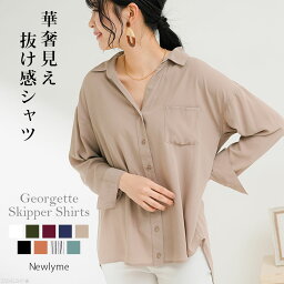 【メール便対応】 トップス 前後差ジョーゼットスキッパーシャツ 長袖 シンプル シフォン ゆったり 体型カバー 大人 きれいめ 通勤 オフィス ホワイト ベージュ カーキ ボルドー ボーダー ネイビー 白 赤【再入荷】