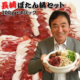 ボタン鍋 【送料無料】長崎ぼたん鍋セット(いのしし肉スライス200g×4P)ボタン鍋 イノシシ鍋 焼肉 BBQ 猪肉 ジビエ 冷凍
