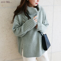 【W-8】【宅配便A】【一部予約】【送料無料】天竺編み アクリルナイロン ポリウレタン サイドスリット タートルネック ニットトップス レディース 長袖 ボリューム感 アシンメトリー S/Mサイズ 春 秋 冬【メール便NG】