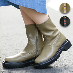 【29%OFF★SALE】 ショートブーツ シューズ 靴 くつ 履物 レディース 秋 冬 フェイクレザー ストレッチ 厚底 フラット 歩きやすい ファスナー付き ジッパー 刺繍 刺しゅう M L ブラック エスニック チチカカ TITICACA / ストレッチフェイクレザーショートブーツ zkwjbc7017