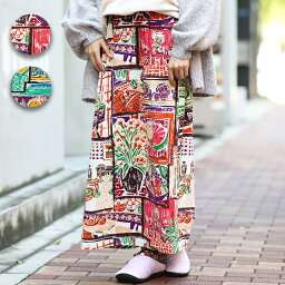 ロングスカート ボトムス レディース 秋 冬 総柄 コーデュロイ 綿100% コットン スリット 背面ゴム サイドホック チャック メキシコ 風景 レッド グリーン エスニック チチカカ TITICACA / プランタスルームスカート kwcbb092