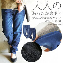 【クーポン利用で2690円!1/6 11:59まで】デニム レディース 裏起毛パンツ 大きいサイズ あったか裏ボアストレッチデニムサルエルパンツ 【M】【L】【LL】【3L】【4L】裏ボア ボトムス 裏起毛 暖かい ボア ジーンズ パンツ デニムパンツ 暖パン 防寒 冬服 【メール便不可】