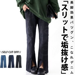 スリットデニムパンツ デニムパンツ レディース Gパン 送料無料・12月29日10時〜発売。メール便不可
