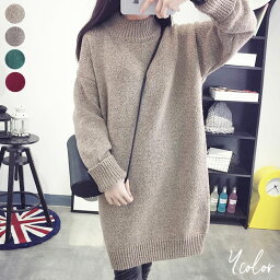 クーポン利用で半額★ 【送料無料】ハイネック ニット ワンピース 膝丈 長袖 セーター プルオーバー ミディアム丈 レディース 無地 防寒 あったか 秋 冬 ゆったり 大きめ 体型カバー【os207-321】【予約販売:2月28日より順次発送予定】宅込