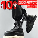 【あす楽対応】 メンズ 10cm身長アップ シークレットブーツ 厚底 タンクソール 足長効果 レザー シークレットシューズ ワークブーツ ブラック 靴 トラックソール 背が高くなる メンズブーツ 身長up ヒールアップ ブーツ シューズ バイクブーツ 低身長