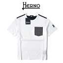 【ポイント10倍】 <br>ヘルノ HERNO <br>【2023年 春夏新作】 <br>COTTON JERSEY Tシャツ <br>RELAXED FIT <br>異素材コンビ 胸ポケット クルーネック 半袖 春夏 メンズ <br>コットン 100% ホワイト×ネイビー <br>イタリア ブランド <br>