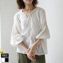 ブラウス (WTA2300) レディース トップス シャツ 綿 コットン レース 涼しい ふんわり 五分袖 七分袖 オフ ホワイト ブラック モノトーン 春夏 無地 ボリュームスリーブ ポワン袖