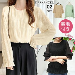 【月末限定55%OFF:1枚1,251円!よりどり2点購入クーポンで】 ブラウス 春 シフォン シャーリング ギャザー レディース シアー レース 裏地付き トップス シアートップス レイヤード ハイネック フレア袖 【 選べる2タイプシャーリングシフォンブラウス 】 ダークエンジェル