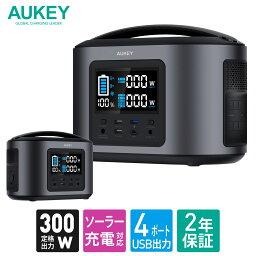 【公式店2年保証】AUKEY ポータブル電源 大容量 400Wh以上 PS-ST04 DC/AC/USB出力 正弦波 停電 防災 リモートワーク Power Ares 400 定格400W オーキー