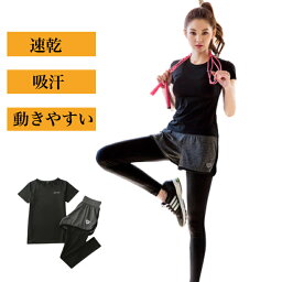 フィットネスウェア スポーツウェア レディース ヨガウェア ルームウェア 上下セット 半袖 パンツ レギンス ジムウェア