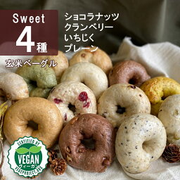 ヴィーガン認証取得 コシヒカリ玄米ベーグル スイート 4個セット(ショコラナッツ・クランベリー・いちじく・プレーン) ( ベーグル 玄米 米粉 ビーガン ヴィーガン パン コシヒカリ 魚沼産 アレルギー対応 乳不使用 卵不使用 健康食 ダイエット ダイエット食品 )