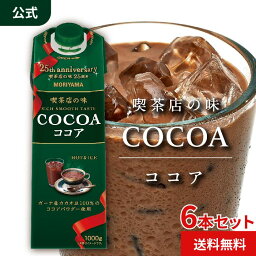 守山乳業 [公式ショップ] MORIYAMA 喫茶店の味 ココア 1000g (1リットル 1L)6本 送料無料 新発売 大容量 ココア 詰合せ セット ガーナ産 カカオ 高級 お徳用 ココア飲料 ドリンク 飲料 濃厚 おいしい ギフト チョコレートドリンク