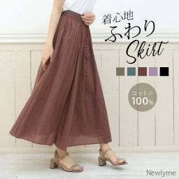 コットンボイルイージーマキシスカート ボトム スカート フレア ロング コアアイテム Newlyme 春 夏 カーキ セージ ブラウン パープル ブラック F 2021年 10代 20代 30代 通勤 通学 結婚式 二次会