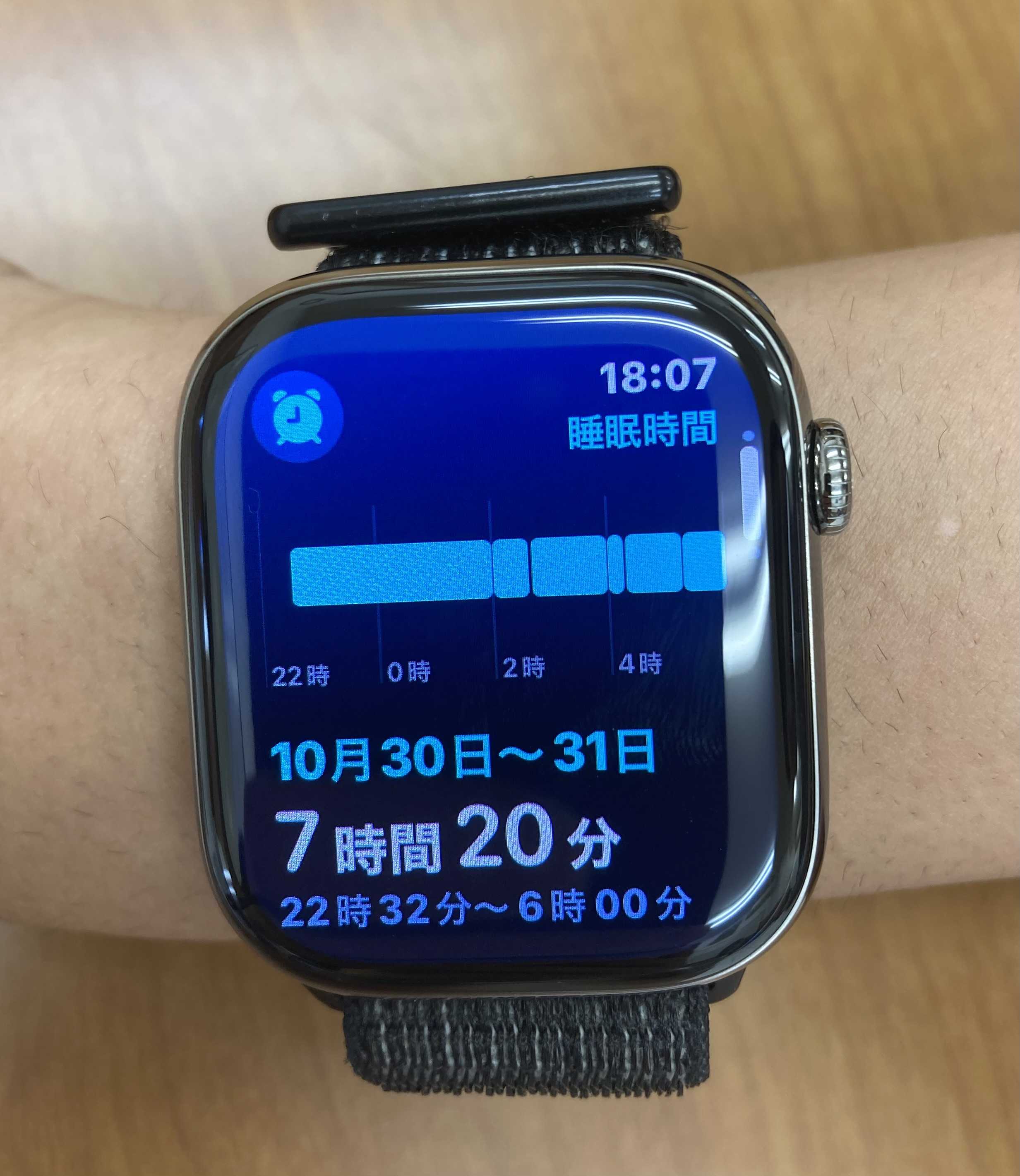 睡眠時間を分単位で把握している者がいてそれは、ないやろ〜!ツッコムとこれがあるんです♪見せてくれたアップルウォッチがあったか!ウチの子寝てるのかしら?に対する最後の切り札かもね♫