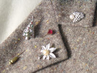 会社勤めをしていた頃は、人と会うことの多い仕事だったので、スーツやジャケットをやたら持っていました。退職して、主人の赴任地に引越しをするとき、クローゼットの整理をしたら、出るわ出るわ。中には、がっしり肩パットが入っていたりして、すっかり時代遅れになってしまったデザインも多く、思い切って処分をしました。オフィスでのアクセサリー使いというのはなかなか難しいところもあって、いくら好きでも、耳・首・胸・腕・指と全身フル装備してしまうと「…今日、どうしちゃったの?」ということにもなりかねない。ボリュームのあるデザインが×、というのではなくて、あくまでも組み合わせの問題なのでしょうが…。「ゴージャス」と「下品」、「シンプル」と「貧相」…ちょっとしたことで印象が大きく分かれてしまう、とっても微妙なセンスを要求される問題だと思うのです。それでも、シンプルな紺や黒のスーツを選んだときなど、何となくペンダントやネックレスだけでは味気ないなぁと思うことが多く、そこで意外と活躍してくれたのが、ワンポイントのピンブローチでした。 【私のコレクションから】 カッチリしたビジネススーツでも、どこかに、楽しい雰囲気のアクセサリーで「可愛い」感じを出したい。そういう気分のときに、動植物のモチーフのピンブローチを襟につけると、ちょうどいいさりげなさかな、と。価格も手ごろなので、大好きな真珠製品を中心に、いくつかのお気に入りをそろえて楽しんでいました。スーツ類をほとんど着なくなった今では、寒い季節から春にかけて、タートルネックのセーターの首の折り返し部分に着けたりします。ちょっと外に食事に行くときなどの、気軽でささやかなおしゃれに、十分活躍してくれます。ふだんのセーターを小さなブローチで飾る、それだけのことでも、「おめかし」の気分を味わえて、楽しい気分になるものです。年齢を重ねても、「かわいい」モチーフのおしゃれを、上手に楽しみたいですね。 Designed by unamama