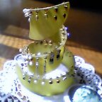このグリーンの物体は、ピアススタンドです。厚いプラスティックがらせん状になっていて、ピアスをつける穴がずらっと並んでいます。 私のピアス収納法 ピアスの飾りをつけてクリスマスツリーみたいです Designed by hana いざという時にしか登場しないゴージャスなものは、購入したときのケースに入れて大事にしまってありますが、ふだん使うピアスは、はずした後こちらのツリーにつけておきます。キラキラしたオブジェのような感じもして、とっても気に入っています。もう10年近く前のことですが、ピアスホールを空けた直後、大阪の「アメリカ村」で、三角公園の前の雑貨屋さんをのぞいた時に見つけた品物です。ちょうど、新しいピアスを買うのがうれしくて仕方ない時期だったのですが、わかりやすく整理してしまうには、どうしたらいいだろう?と悩んでいたのでした。(買ったばかりのピアスを、家ではずしてなんとなくティッシュに包んでおいたら、いつの間にか捨ててしまっていた…という悲劇も起きていたもので)その時、当時大阪に住んでいた夫とデート中。手にとってしげしげと眺めている様子を見て、その場で購入してプレゼントしてくれました(ラッキー♪)。箱に入れて包んでもらったら、ちょっとかさばる荷物になったのですが、うれしくて大事に抱えて、家に帰る新幹線に乗ったことを覚えています。最初はまばらだったピアスの数も、集めていくうちに、今ではこのツリーだけでは収まりきらないほどに…。一つひとつ見ていくと、自分へのごほうびに買ったもの、旅先で記念に買ったもの、そして夫や家族からの贈り物…それぞれにまつわる思い出が甦ってきます。他のアクセサリーと比べてお値段が手頃で、小さいだけにちょっと冒険しても許される…そんなピアスのおしゃれが大好きです。□ピアスも、真珠を使ったデザインに目がありません□→ほかの真珠ピアスを見る○人気blogランキングへ○