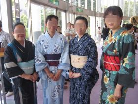 3連休の始まりと共に梅雨が明けました!ギラギラと照りつける夏の日差しを浴びながら、伊勢に「赤福氷」を食べに出かけてきました。今日のメンバーは総勢5人。あとむちゃん、mayさん、Wさん、こけしさん、私。遠来のこけしさん、Wさんに、うどん界の異端児(?)名物「伊勢うどん」をご賞味いただいた後、まずは伊勢神宮の内宮さんにお参りしました。地元のあとむちゃんのガイドで、観光客の集団が通り過ぎてしまうお社にも立ち寄りつつ、ご正宮にたどり着いたら、目を疑う光景が…!なんと、拝殿する場所(矢印で示した鳥居のところ)に向かう石段に、上から下までびっしりの人、人、人。こんな状態、初詣の日だけかと思っていました。さすがは3連休?15分近く「順番待ち」の状態だったように思うのですが、そんな中、船場お買い得情報の話題に花を咲かせていた私たち。聖と俗の境界線は、かくもあいまい…(笑)パワースポットブームの影響なのでしょうか。神宮内で、石に手かざししたり、木に手を当てたりする人の姿が近年、本当に多くなりました。ただあとむちゃん曰く、神様に願い事をするというよりは、目標に向かいがんばりますと誓いを立てるのが、正宮におけるお参りのあるべき姿なのだそうです。神頼みも時には必要だけれど、何事も立ち向かうのは、神様じゃなくて自分自身だものね。ぐるりと内宮参拝を終えた後は、さすがに体中の水分が飛んでしまったような気分でした。宇治橋に一番近い氷スポット、赤福の支店で、さあ!本日のメインイベントです。手ぬぐい広げてハンカチもって、準備は万端!何度となく食べてきた赤福氷ですが、スポンジが水を吸い込むように、冷たさが!甘さが!身体の内側に染み渡って…本当においしかった~!!mayさん&あとむちゃんとは、去年肌寒い雨の日に赤福氷を食べにいって、とても切ない思いをしたので、今日はまさに「リベンジ達成」でした。食べ物の旨味を増幅させるTPOってあるのですね…この夏お伊勢参りを計画されている方にオススメなのが、おかげ横丁の中にある「おかげ座」という施設。江戸時代の「おかげ参り」の情景を、間近に鑑賞することができます(1/2スケールのお人形ですが)。何が良いって、ここは空調がバッチリ効いているのです(笑)夏のキモオデには、エアコンで涼む休憩時間は必須。案内係について歩いていく集団とは離れて、しばしタイムスリップした空間に座り込む私たちでした。着物を褒められ、ずっとここに居てほしいくらいですわ、と案内の方に言っていただく…でもごめんなさい、汗がひいたら平成の世に帰りますね。その後も、食べ歩きやお買い物を楽しみ、伊勢肉の牛丼で早めの夕食も済ませて、楽しい一日はあっという間に終わっていったのでした。時代が逆戻りしたようなおはらい町の風情に、皆さんの着物姿のなんと映えることでしょう。綿麻や縮の盛夏の装い、見ていてとても涼しげです。着付けの先生が以前、「最近は若い子が夏に肌を露出しているけれど、むき出しの肌が汗ばんでいる様子より、着物をさっぱりと着ている姿の方が、見ている人にしたらどれだけ涼しそうに映るかわからない」という意のことをおっしゃっていたのが、よくわかりました。まぁ、着ている当事者は汗だくなんだけれども(笑)おしゃれのためにガマンをするのは、女子の心意気ってものですね!この日の装いは、先日のジュスカLIVEの日に続き、綿麻のしじらで。先日買ったばかりの羅の帯を合わせました。こけしさんとは、どうやら同じショップで買ったデザイン違いを持っているかも?という話を以前からさせていただいており、今回は揃って「しじらシスターズ」結成でした(笑)シスターズ解散を惜しみつつ、駅のホームでお別れの記念写真。夏の素敵な(そして美味しい)思い出を共有していただいた皆様、ありがとうございました。手を合わせて神様に伝えた想いが届きますように。日々を生きていく力をもらって、明日からまたがんばっていきましょう。