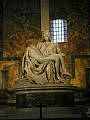 上空から見ると鍵の形をしている広場を、回廊沿いに大聖堂まで歩いて行き、ほの暗い堂内に足を踏み入れて何気なく脇見をした瞬間、ミケランジェロの「ピエタ」(写真)の彫像がいきなり出現したときの驚き。