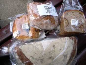 ずっと食べてみたかった、チクテベーカリーCICOUTE/BAKERYのパン。週末だけ、青山のドワネルdoinelで購入できると聞いていたのですが、やっと購入にいたりました。購入したのは〜(☆評価)。マロンペーストと栗の渋皮煮入りのパン(☆☆☆)マロングラッセと黒砂糖入りのリュスティック(☆☆)チョコとナッツのベーグル(☆☆)他に、ドライトマトのマフィン(☆☆☆)噛み締め甲斐のある良いお味〜。袋から出した途端に、鼻を抜けるかぐわしい香り、見事な焼き色のカンパーニュ。(☆☆☆)どっしりみっちりのオーツスコーン(☆)ちょい粉っぽい気が。以上です。結論として、チクテのパン、とっても好みです。粉の味、焼き具合、しっとり&どっしり感、噛むほどに深い味わい、酵母の香ばしい香り。勝手に美味しさの期待値が上がってたのに、それに答えてくれて嬉しいなぁ(^_^)ただ、絶賛されているマフィンは店頭での予約販売とかで、ハードルやたら高く、いつか食べる機会があるんでしょうか。ちなみに、また食べたい一番は〜トマトのマフィンでした!