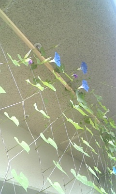 朝顔の花が咲きません。誘導したのですが、イメージどおりにつるが巻きついてくれず、上のほうでわらわらと変なふうにびろびろとぶらさがっている余った部分が嫌いになりました。しかもビミョウに日当たりが悪いところの葉が落ち、嫌いになりました。朝顔のつぼみ部分が枯れ、嫌いになりました。肥料をやらないと、花がつかないと聞き、窒素(葉のため)とリン(花のため)の栄養剤を希釈してまいたところ、突然つぼみをつけるようになりました。数日は綺麗に咲いたのですが、イメージどおりに位置で開花してくれなかったので嫌いになりました。台風の影響で葉が傷んでぼろぼろになり、嫌いになりました。土がすぐ乾くので水をまきますがめんどうくさいので嫌いになりました。ここ数日はどういうわけか開花せずに、つぼみのまましおれてしまうので、嫌いになりました。でも、どうせこれから数日、誰も水をやることができないので、枯れてくれますから、気にする必要はありません。ただし、枯れた朝顔のすだれを片付けるときは、もっと嫌いになると思います。6歳児でも育てられるような花なのに、なんでこんなことに。朝顔から毎日屈辱感を味合わされています。いやこれこそ自分が播いた種というやつなんですが。美しかったころの姿。