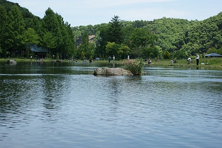 ☆白河フォレストスプリングスにて ☆6月6日昨日、遠くは名古屋、東京、仙台からの参加者を含め総勢12名で予定通り第22回SECフィッシング大会を開催ました。前日の雨が嘘のような快晴で、最高気温は25度。この状況が白河フォレストスプリングスでの釣りに吉と出るか、凶と出るか~これまでの経験では、こんな日は大会参加者にボウズ続出なのです。午前7時10分、2人ずつのチームに分かれ5箇所で45分間の競技の開始です。ハンデ戦で、大物一本でSEC杯の順位が決まります。それに個人戦と団体戦の数釣りでの競技もプラス。私、SaltyfishはKonさんとチームを組んで山側上流から釣り始めました。Konさんは実力を発揮し、私より先に2匹釣ったのです。このところ白河では小さい魚しか釣れませんので釣った魚の最大全長が30cmと小さいのでした。一方、私はボウズにならないための一番貴重な時間帯にこれまで練習してきたルアーにアタリがなく、焦っていました。結局、最初の45分間、私は釣れずに終わりました。まさか、白河を一番知っている私が…練習量の一番多い私が…ボウズの、「ボ」の始まりかも!? (続く) ⇔投票して頂けると嬉しいです⇔■第42回オーパー!ルアーコンテスト ⇒ 6月20(日)9:00~