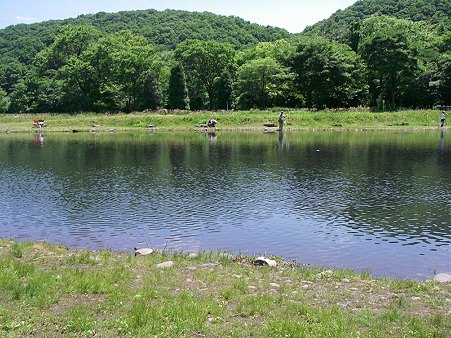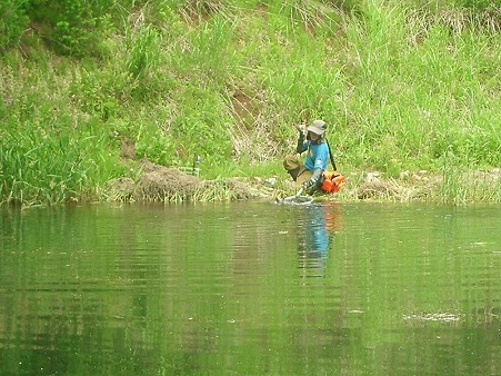 ☆第22回SECフィッシング大会 白河フォレストスプリングス ☆6月6日午前9時55分 山側中流で第4回戦が始まりました。ここから後半戦となります。釣れない時間帯に入り、私も他の釣り人も皆釣れていませんでした。しかしチームメイトのKonさんは、ここでも数を増やしました。これはKonさんのテクニックが優れている証拠なのです。あとは大きさの運だけです。Konさんは、この場所で2匹釣って、合計8匹となったのです。しかし相変わらずサイズは伸びず最大全長34センチのままでした。私はと言うと… 数回ばらしただけで、この場所では1匹も上げられませんでした。ここまでの合計釣り数が2匹と、寂しい限りです。こんな私は猫ちゃんに見放されてしまうのでしょうか?(お土産を持って来なかったからかな~)幸運の神様にも見放されたと言うことなのかもしれません。(いや、それじゃ困る。 お礼するから大物を釣らせて、猫ちゃん!)こんなことばかり考えているようでは、釣れないのは当然かな?あとはKonさんの数釣りを応援し、団体優勝を目指すのみです。(続く) ⇔投票して頂けると嬉しいです⇔■第42回オーパー!ルアーコンテスト ⇒ 6月20(日)9:00~