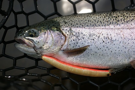 ☆白河フォレストスプリングス ☆6月2日猫ちゃんを落胆させた直後、またロッドに手ごたえを感じたのです。「来たかも」と猫ちゃんに声を掛けると、こちらをちらりと見るだけ。秘密兵器で2匹目が釣れました。これで、ようやく計3匹となりました。テストは成功、激渋対策完了です。「ほ~ら、どんなもんだい」いつの間にか、私は猫ちゃんを話し相手にしていました。ちょっと、暗いかな… (続く)動画猫ちゃんへの私の魚自慢です。 ⇔投票して頂けると嬉しいです⇔◇第22回SECフィッシング大会でボウズにならないための情報◇ 昨夜からの雨でコンディションはどう変わったか? 水温は下り水は濁り・・・ 読みの勝負になりそう■第42回オーパー!ルアーコンテスト ⇒ 6月20(日)9:00~
